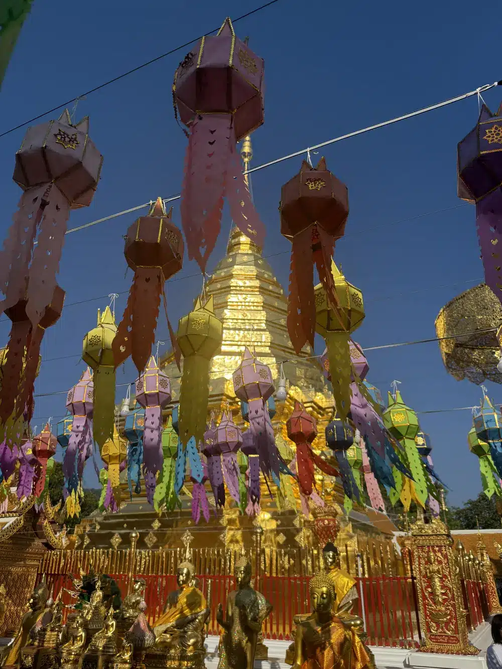 Mietet euch ein Auto für das Umland. Es lohnt sich. Zuerst haben wir den Wat Phra That Doi Suthep besichtigt – ein sehr schöner Tempel mit einem grandiosen Blick auf Chiang Mai.